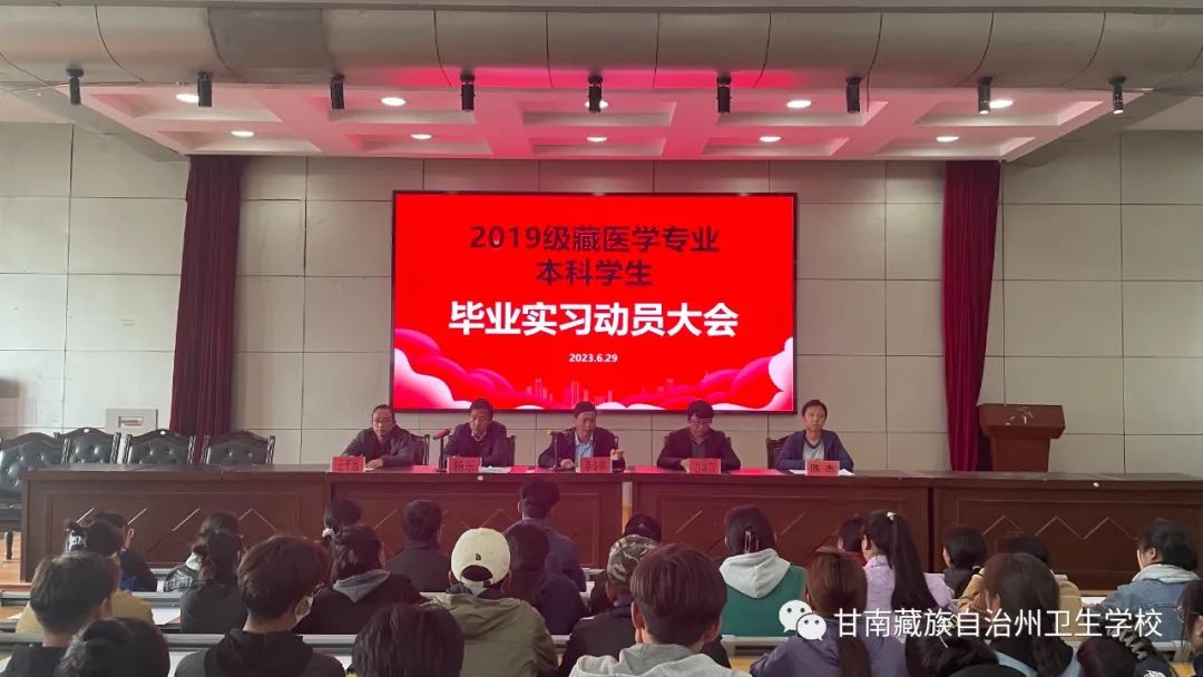 为引导学生树立正确的实习观念,调动学生步入实习工作的积极性,尽快熟悉临床实习生活,2023年6月29日,我校(院)召开甘肃中医药大学藏医学院2019级藏医学本科专业学生毕业实习动员大会,甘肃中医药大学藏医学院副院长、甘南州卫生学校副校长李小林出席会议并讲话,2019级藏医1、2班学生、班主任、送实习生到实习医院的老师及相关科室人员参加会议,会议由甘肃中医药大学藏医学院教务科科长杨乐主持。