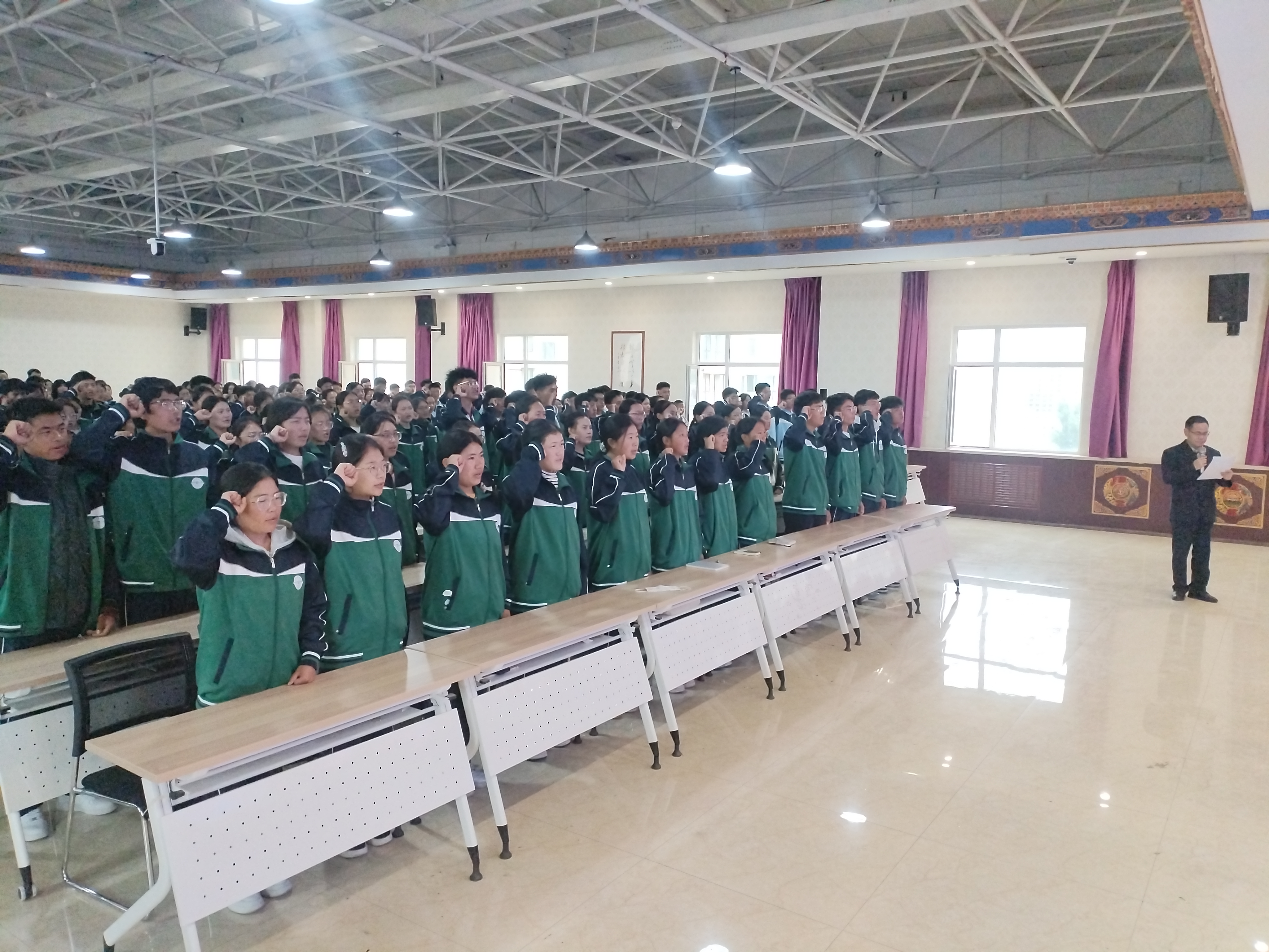 开学典礼在庄严的国歌声中拉开了帷幕。学校政教室主任杨宏领读《医学生誓言》;甘南州卫生学校副校长李小林介绍学校(院)基本情况及中职各专业“3+2”对口升学情况。