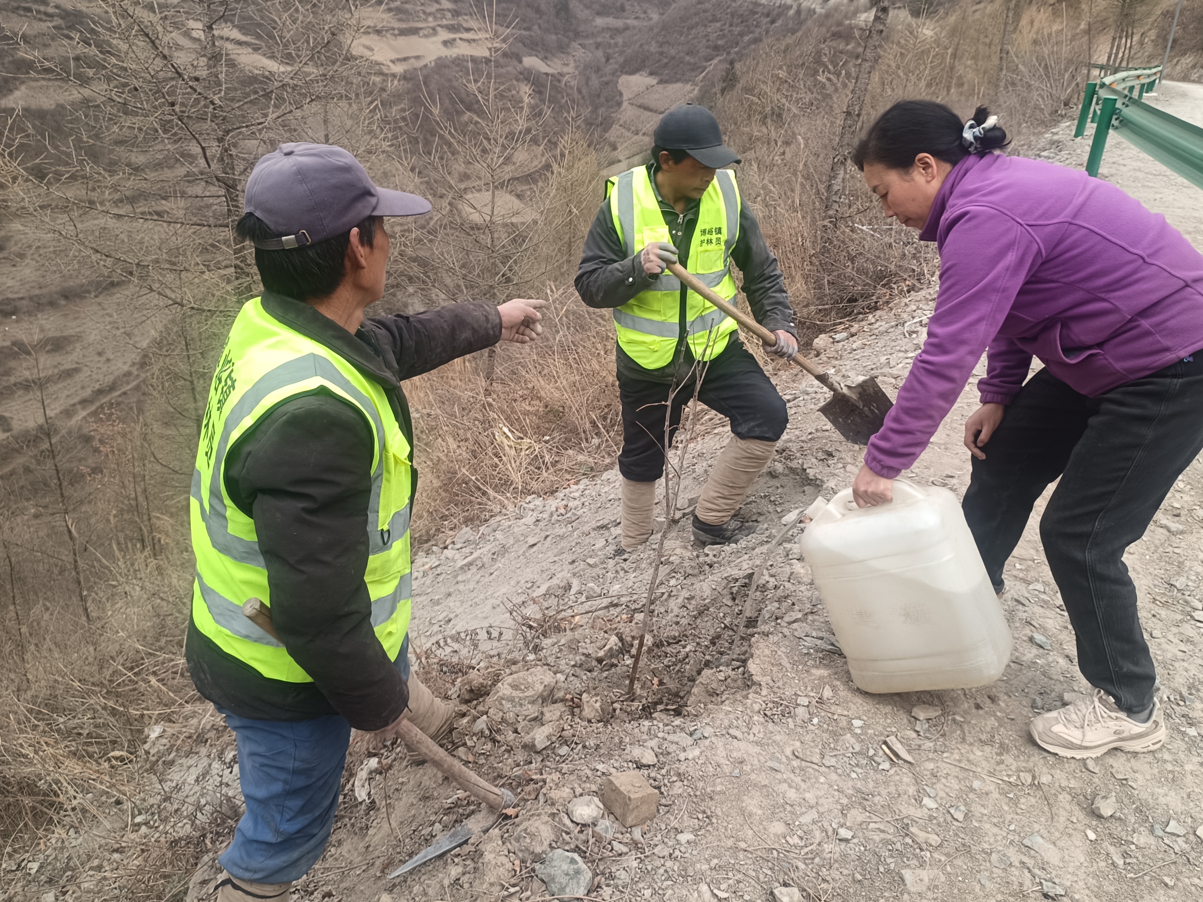 尽管春风中还夹带着几分寒意,却远远阻挡不了大家的热情。帮扶队队员与护林员早早来到植树现场,干劲十足,迅速投入到植树劳动中,挖坑、扶苗、培土、浇水各环节井然有序,每一个环节都认真细致,以确保树苗的成活率。新苗沿村道、河岸及荒坡次第延伸,形成3公里生态防护带。“既美化了环境,又能防止水土流失,甘南州卫生学校给村里办了件长远事”村民王张娃边培土边感慨。