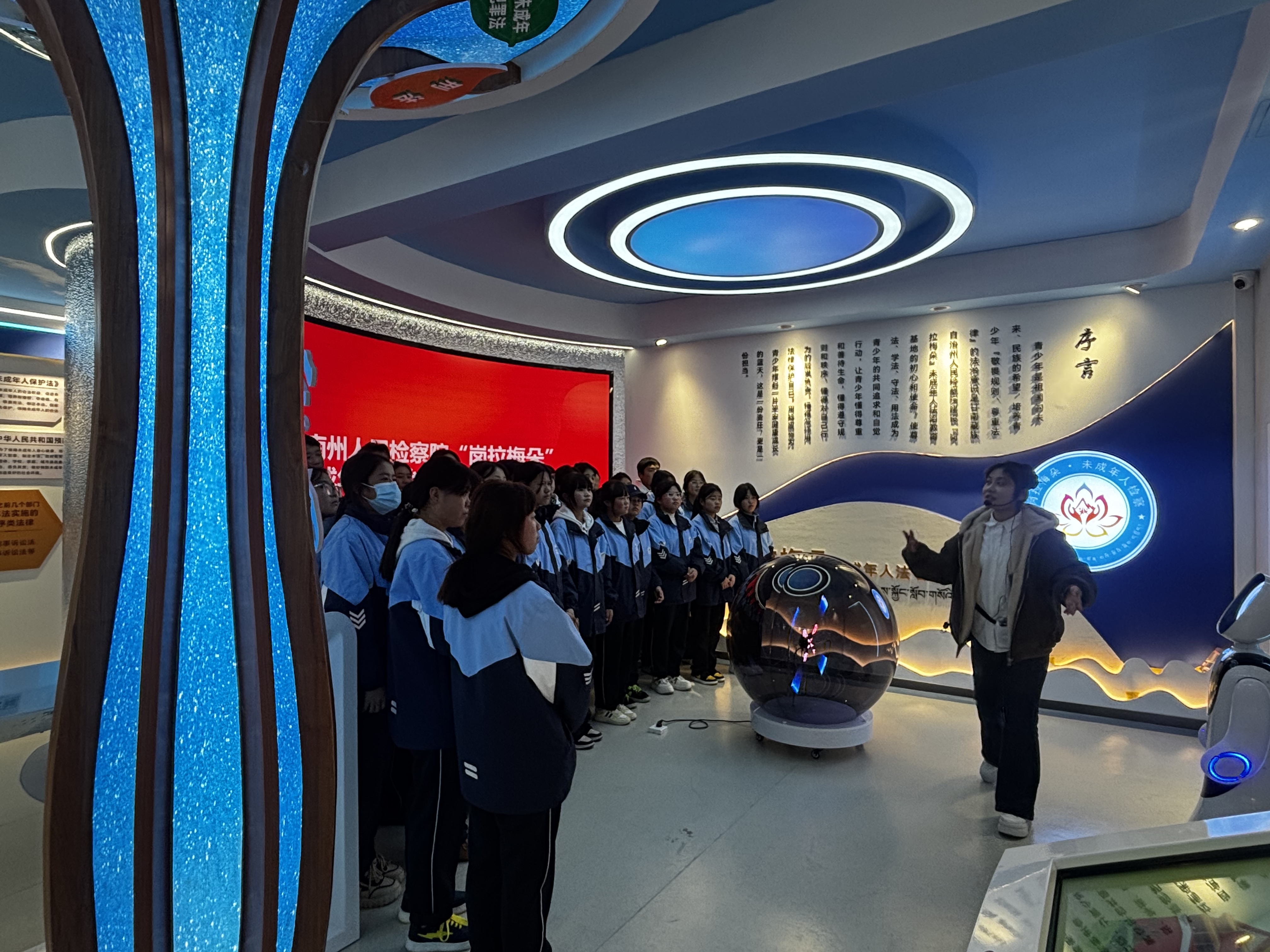 4.组织法治实践体验。12月8日,组织80余名学生代表到甘南州青少年法治宣传教育基地开展实践活动,学生通过模拟法庭、法律知识讲解、神舟“岗拉梅朵”号飞船体验等形式,“零距离”感受司法公正。在基地讲解员引导下,学习宪法与未成年人保护法、预防未成年人犯罪法相关法律条款,进一步提升学生法律认知与实际运用能力。