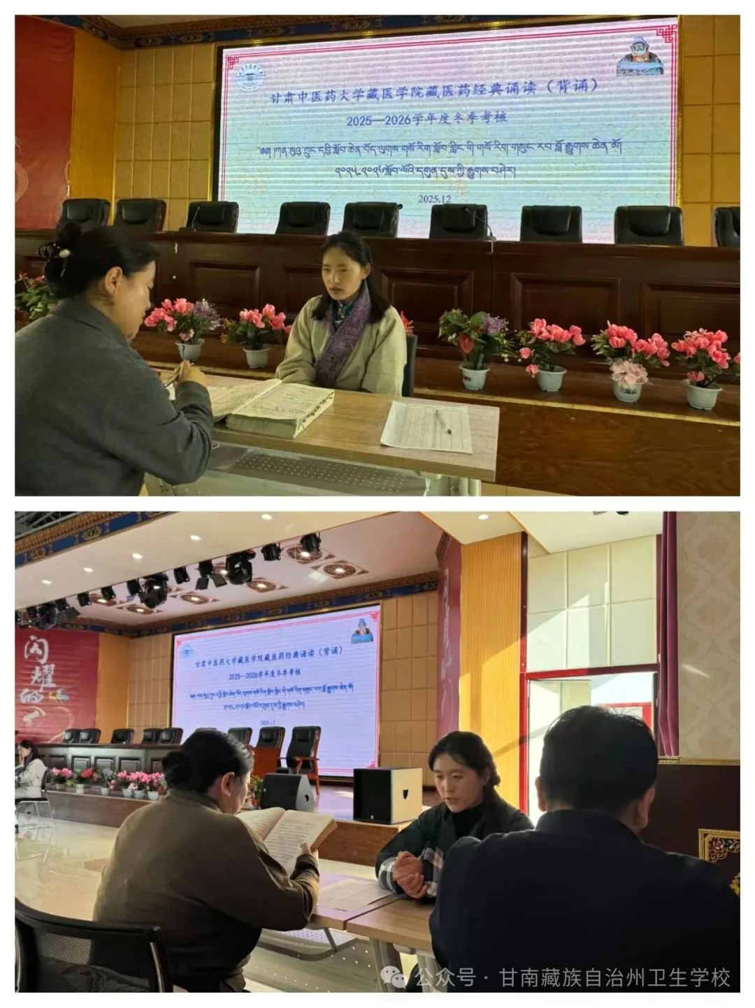 为传承藏医药优秀传统文化,夯实学生专业基础,营造“读经典、诵经典、悟经典”的浓厚学风,我院于2025年12月9日在综合服务楼五楼多功能厅组织了藏医药经典诵读(背诵)2025—2026学年度冬季考核工作。