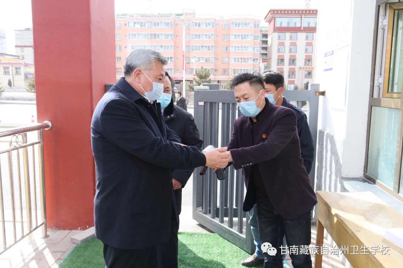 3月11日下午4点,州政府南木卡桑结副州长,州政府副秘书长、州机关事务管理局局长杨家登,州卫生健康委副主任丁利锋一行来我校检查疫情防控及开学前准备工作。